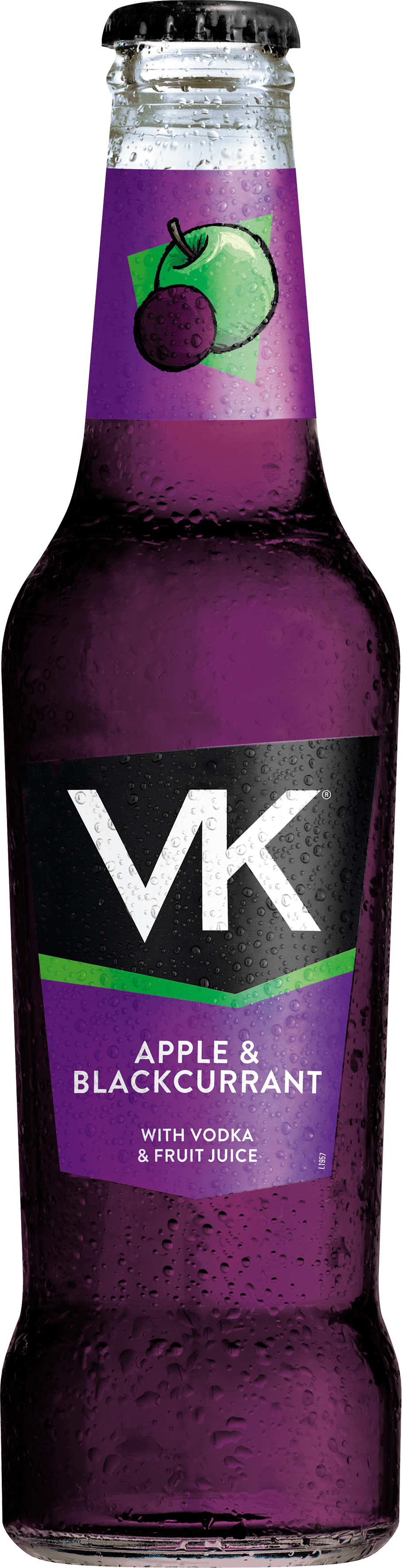 A sparkling Apple and Blackcurrant flavoured vodka mix with fruit juice, sugar and sweetener.